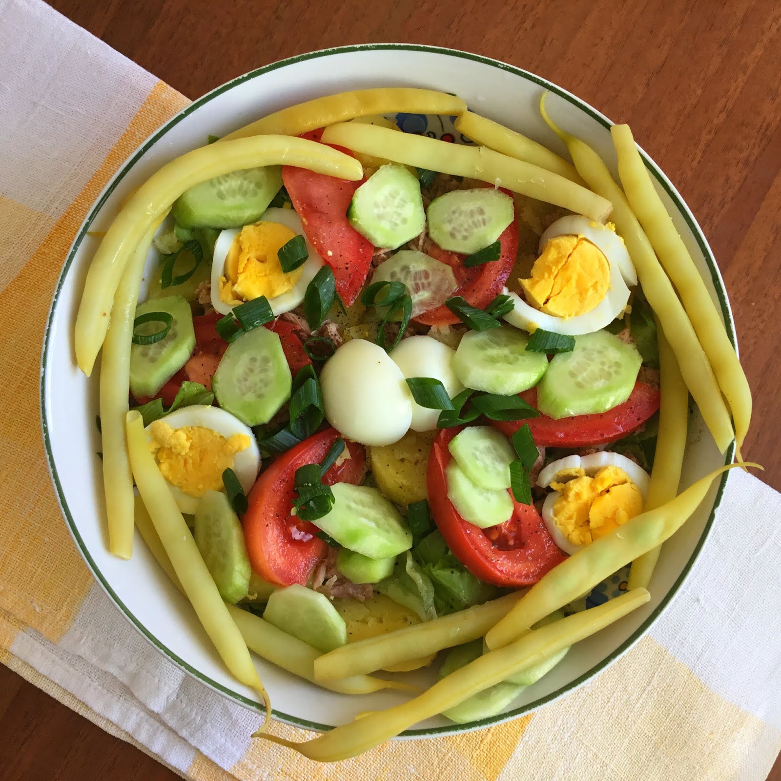 Instructions for 1 large serving of My low FODMAP Nicoise salad: