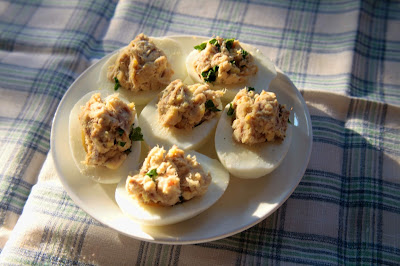 Low FODMAP stuffed eggs with smoked mackerel